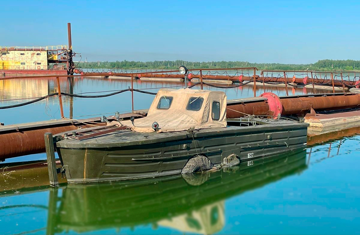 Буксирно-моторный катер БМК-130 предназначен для буксировки паромов при устройстве мостовых и паромных переправ, переноса моста на другой створ, забрасывания якорей, для разведки реки и выполнения различных задач при оборудовании и содержании переправ. Катер оборудован дизельным двигателем ЯАЗ-204 мощностью 100 лошадиных сил, способным развить скорость 19 км/час. Применение катера при перемещении земснарядов позволит снизить время производственных простоев, повысить безопасность производства работ и создать более комфортные условия труда персоналу. А его боковые складные колеса позволят легко его перемещать между карьерами предприятия.
